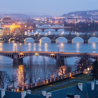 The Prague Castle and Strahov Monastery are perched high above the city. These monuments are not only famous for their sweeping views over the city, but they also play an important role in Prague's cultural history. Want an even better view? Ride the cable car up Petřín hill. At the very top stands the Petřín lookout tower with its 60 metres high viewpoint, guaranteeing the best views over the city and the mighty Vltava river.