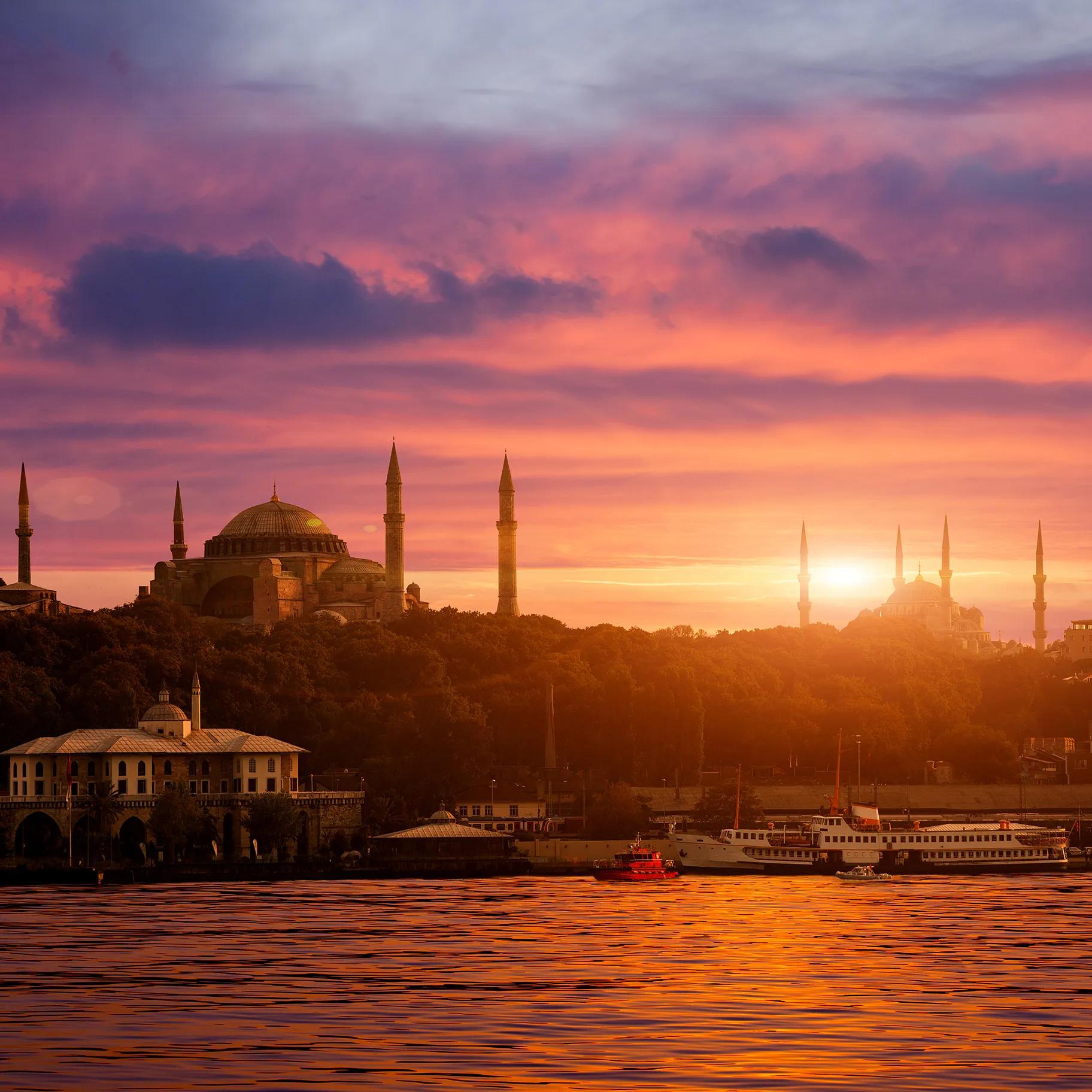 The Four Seasons Hotel on the banks of the Bosporus is one of the most popular wedding venues for Istanbul’s high society. The pale pink former Ottoman palace, with its marble interior, velvet fabrics and stunning hand-painted ceiling decorations, feels more like an intimate resort than a hotel. The main terrace and some of the rooms offer an irresistible romantic view over the river. At night, lit torches illuminate the terrace. The luxury spa at the hotel boasts a special 2-person treatment suite.