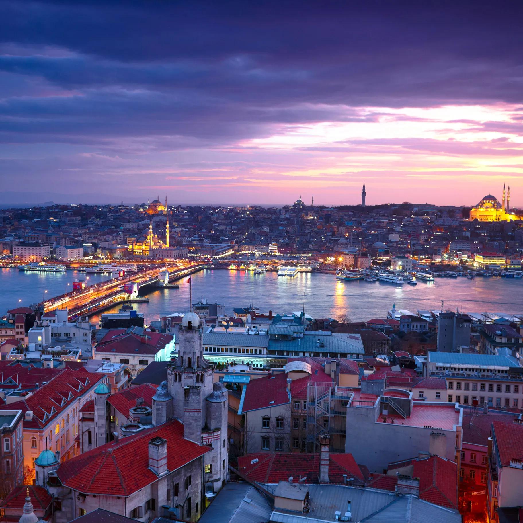 There is no better place to admire the sunset than from the waterfront. In the district of Eyüp stands Pierre Loti, a hill named after a famous French writer. Traditionally this has been a meeting place for lovers. From here you will have great views of the Golden Horn. The Golden Horn itself, and especially the port, is also a wonderful place to see the lights come on in the city. After dark, sit down for a candlelight dinner. For a special night out, take the ferry from Kabataș or Salaçak to the Kiz Kulesi, a former lighthouse on an island in the middle of the Bosporus. From the restaurant you will see night fall over Istanbul, while you enjoy live music, delicious food and drinks. Conclude the perfect romantic night with an evening cruise on the Bosporus, sailing from the old to the new city, underneath magically illuminated bridges, with beautiful views of the palaces, castles and mosques.